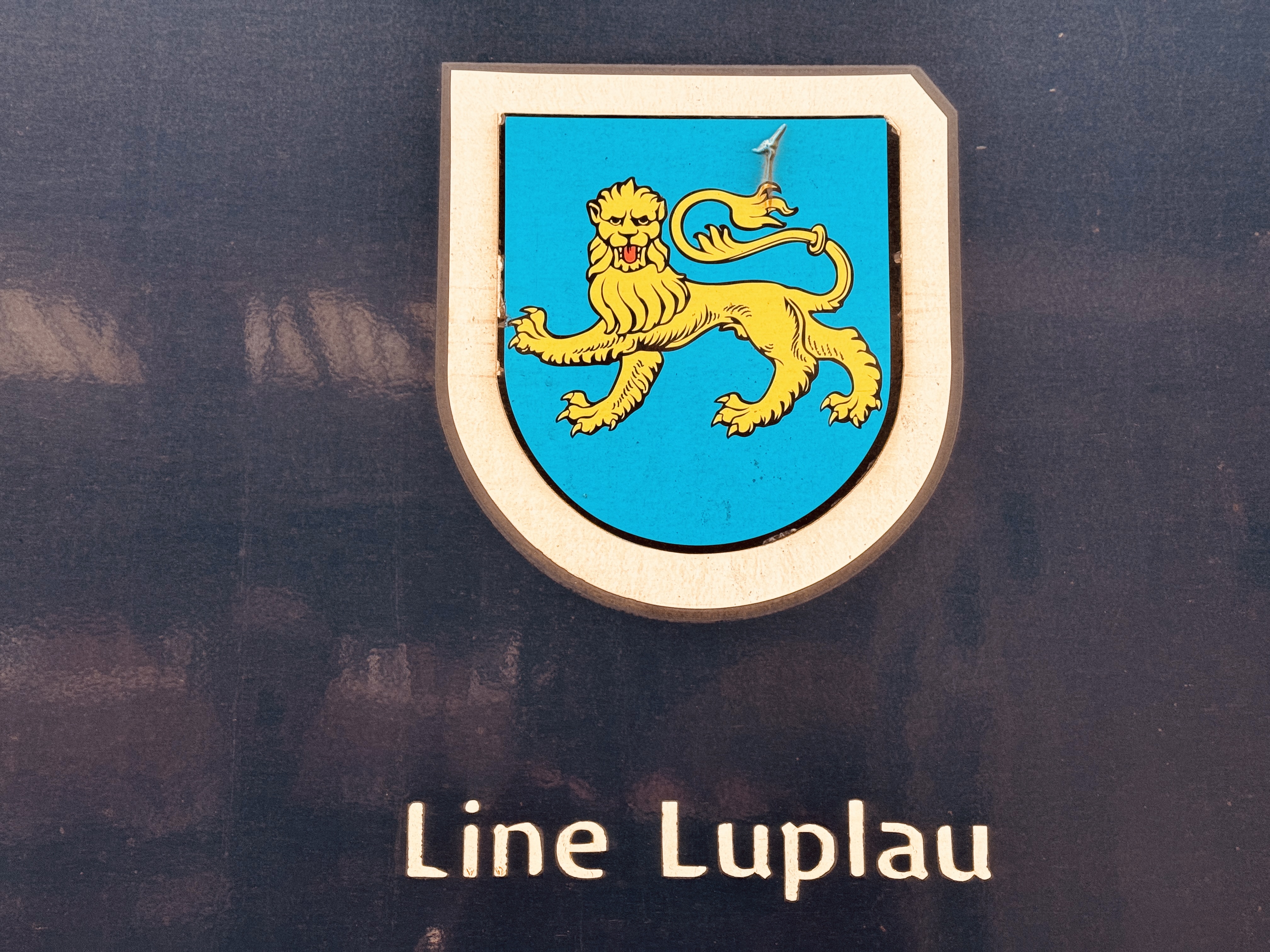Billede af Vardes byvåben og navngivet "Line Luplau" på siden af DSB MF 5041 fotograferet ud for København Hovedbanegård.