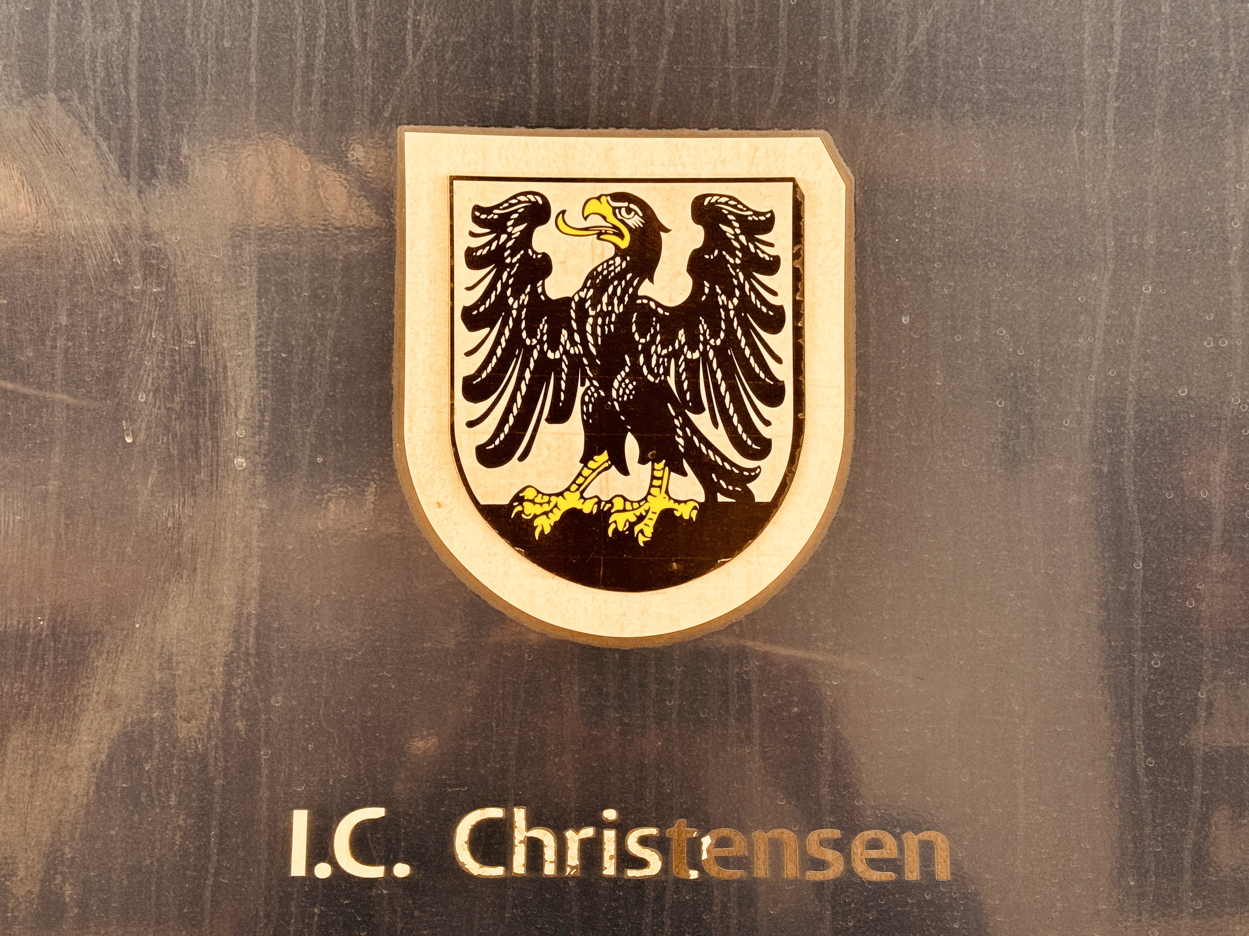 Billede af Ringkøbings byvåben og navngivet "I.C. Christensen" på siden af DSB MF 5073 fotograferet ud for København Hovedbanegård.