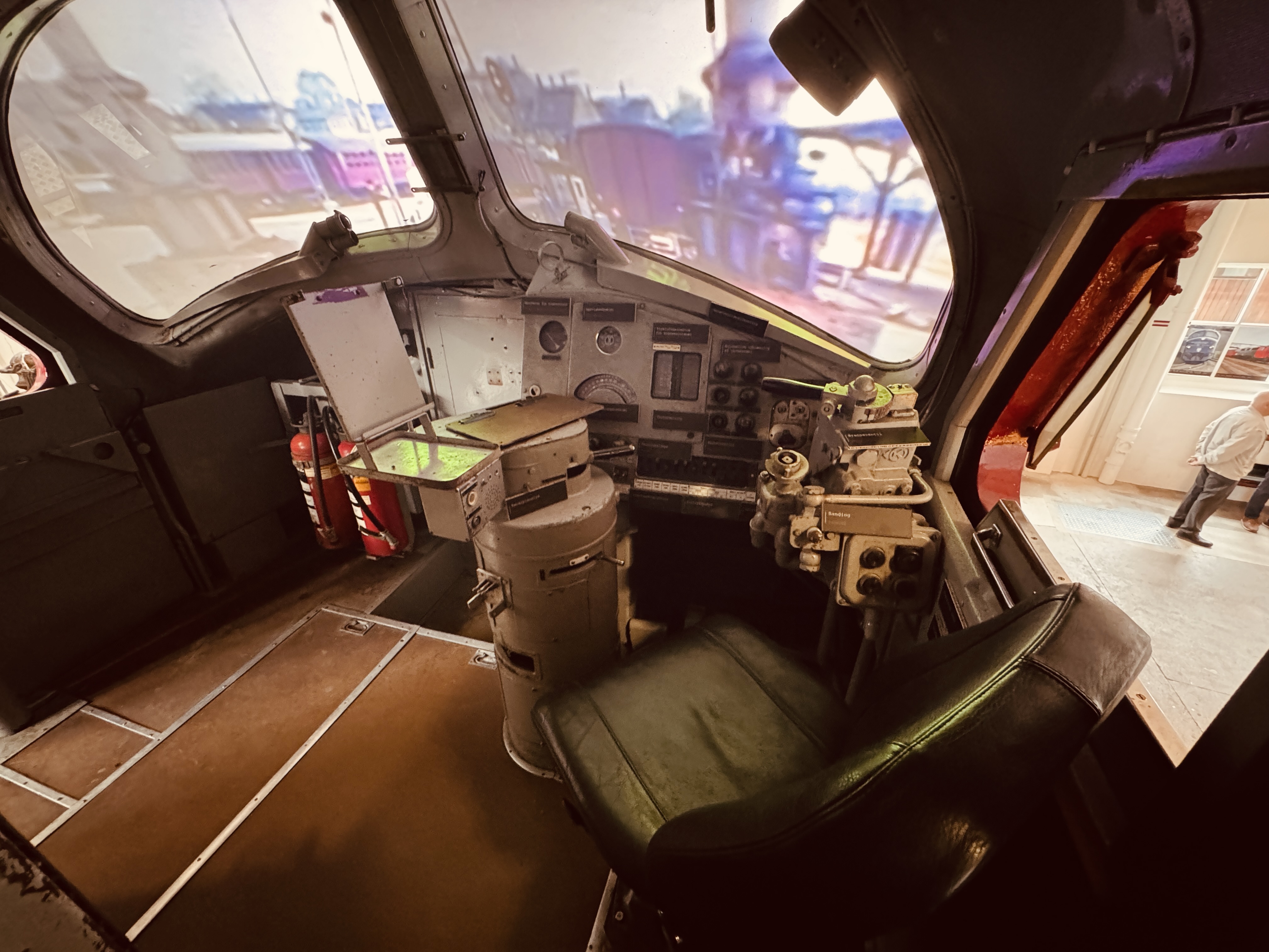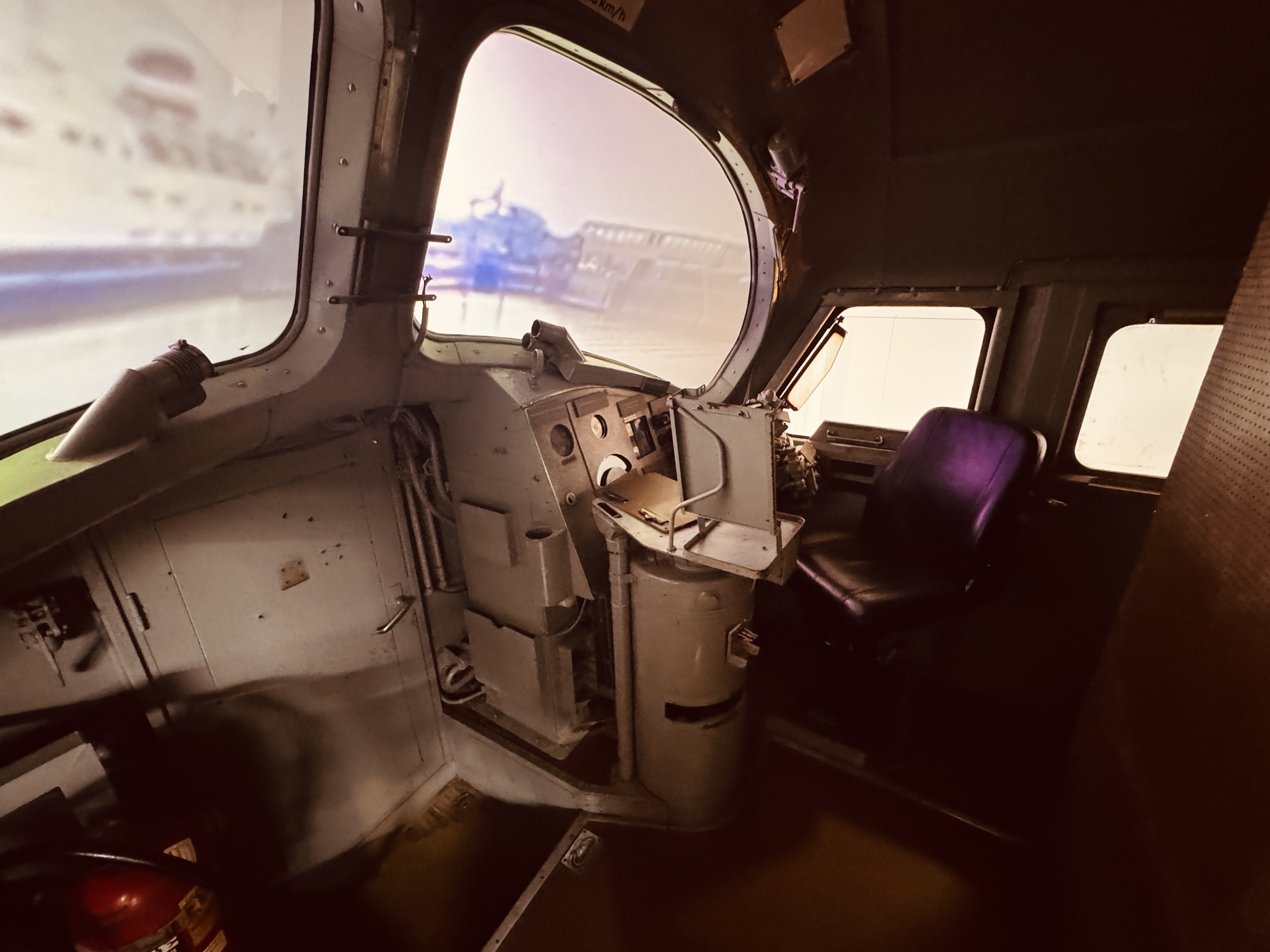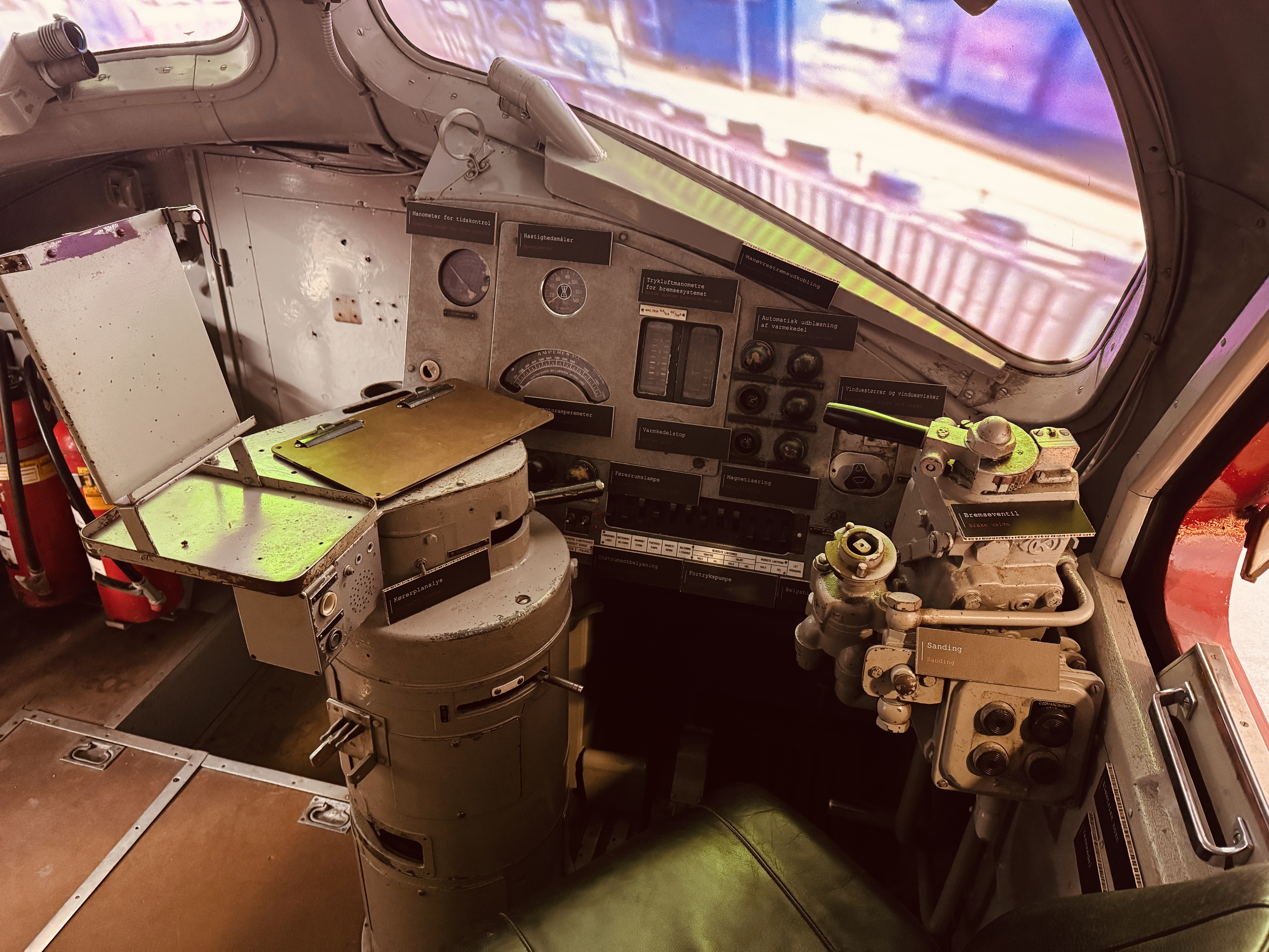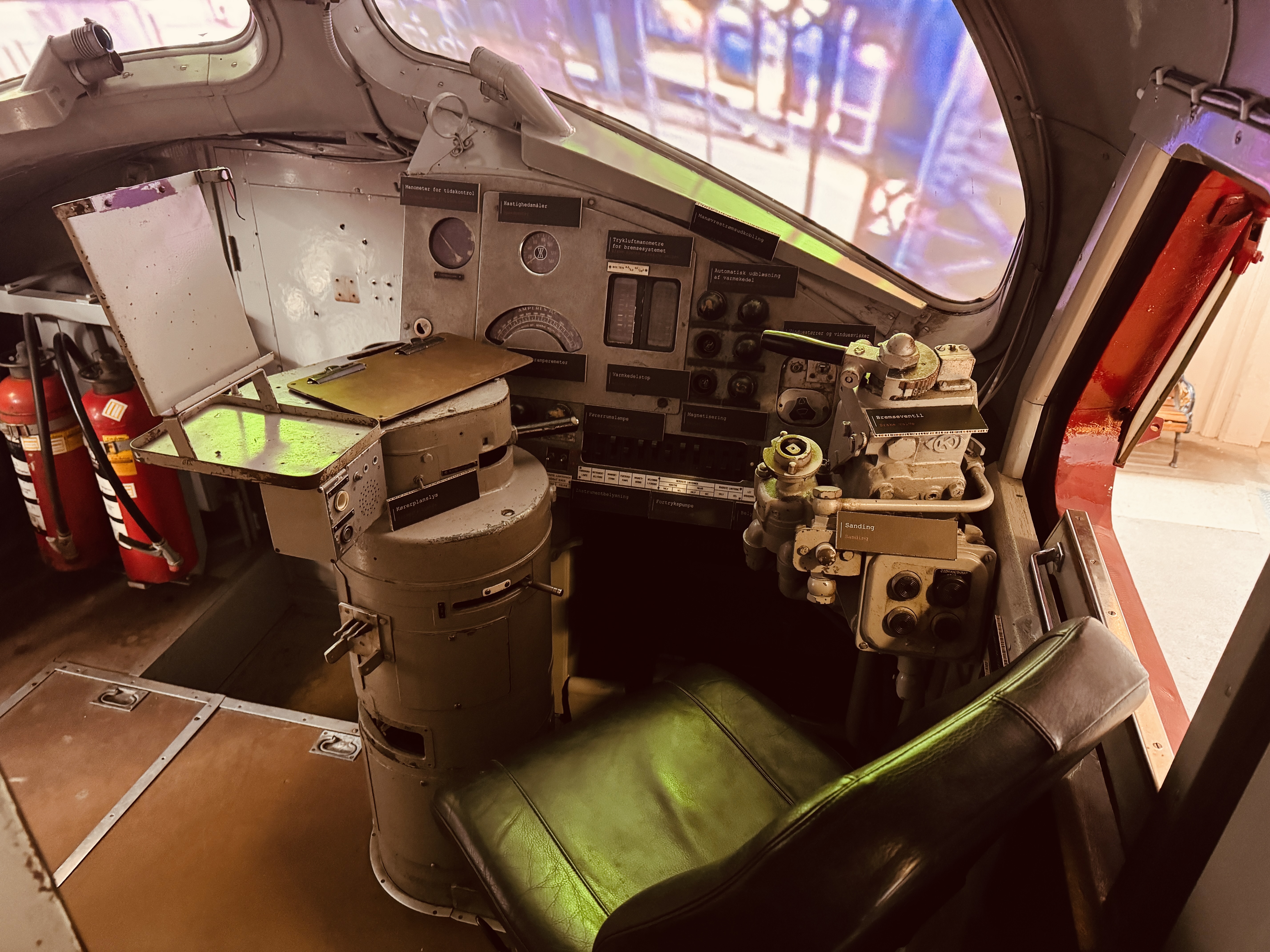 Billede af førerkabinen DSB MY 1112 fotograferet  på Danmarks Jernbanemuseum i Odense.
