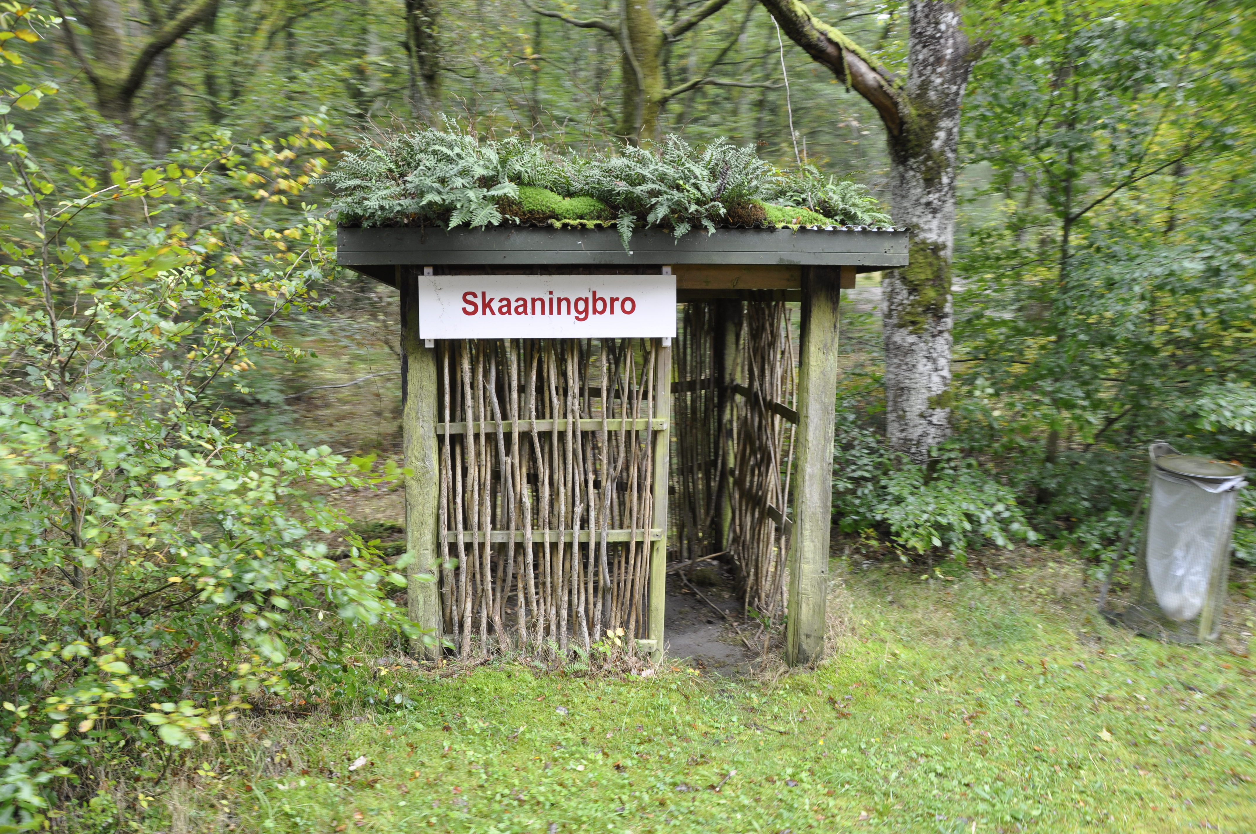 Skåningbro Trinbræt havde nok Danmarks mest specielle Læskuret i form af en løvklædt hytte, denne hytte er stadig bevaret og vedligeholdt.