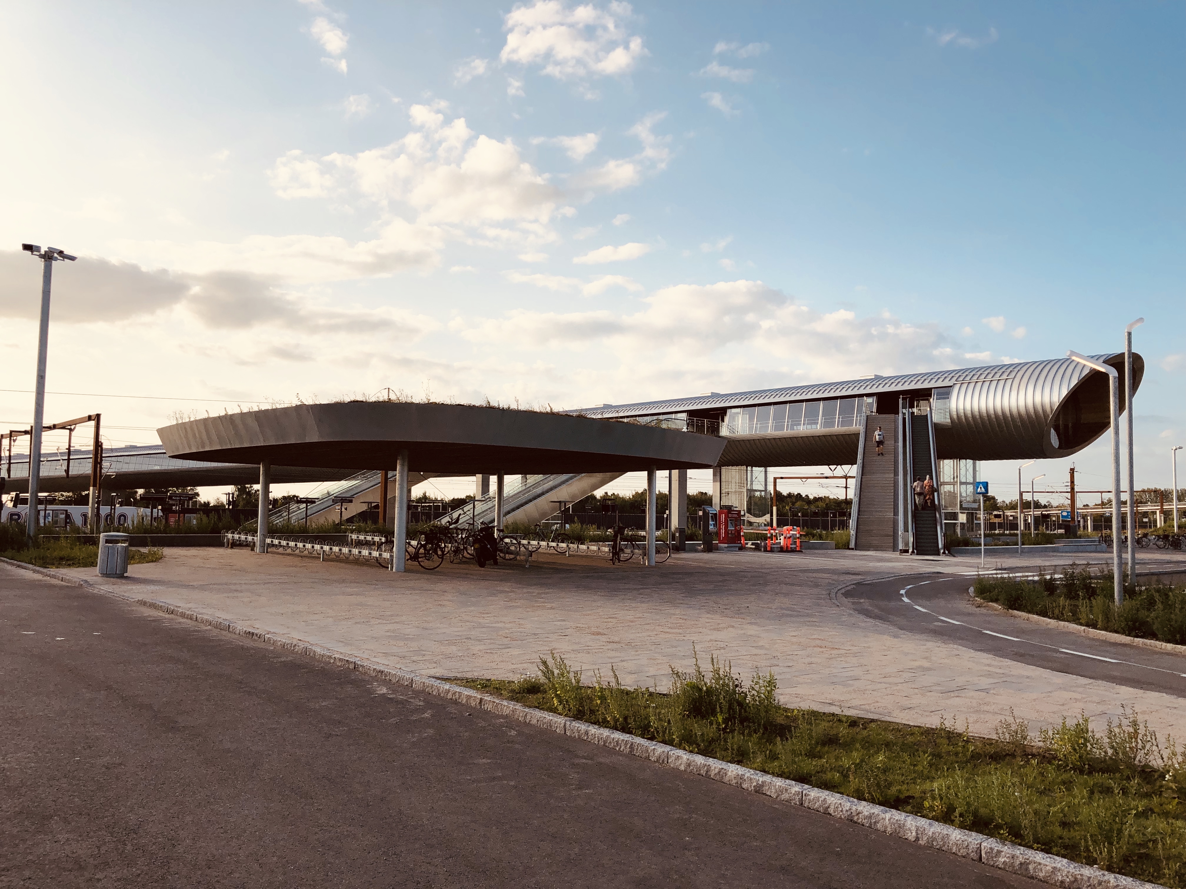 Køge Nord Station er ikke bare en funktionel transporthub, men også et arkitektonisk mesterværk. Den 225 meter lange gangbro, der forbinder de to sider af stationen, er blevet anerkendt både nationalt og internationalt for sit spektakulære design. Broen fungerer som en central forbindelse mellem S-banen og fjernbanen og sikrer, at passagerer nemt og hurtigt kan skifte mellem forskellige transportformer.Broens design, skabt af COBE og Dissing+Weitling i samarbejde med COWI, er både funktionelt og æstetisk imponerende. Broen er konstrueret som et "rør" over motorvejen og giver passagererne en panoramaudsigt over området, mens de bevæger sig mellem perronerne. Med rulletrapper, trapper og elevatorer er der sikret let tilgængelighed for alle rejsende.