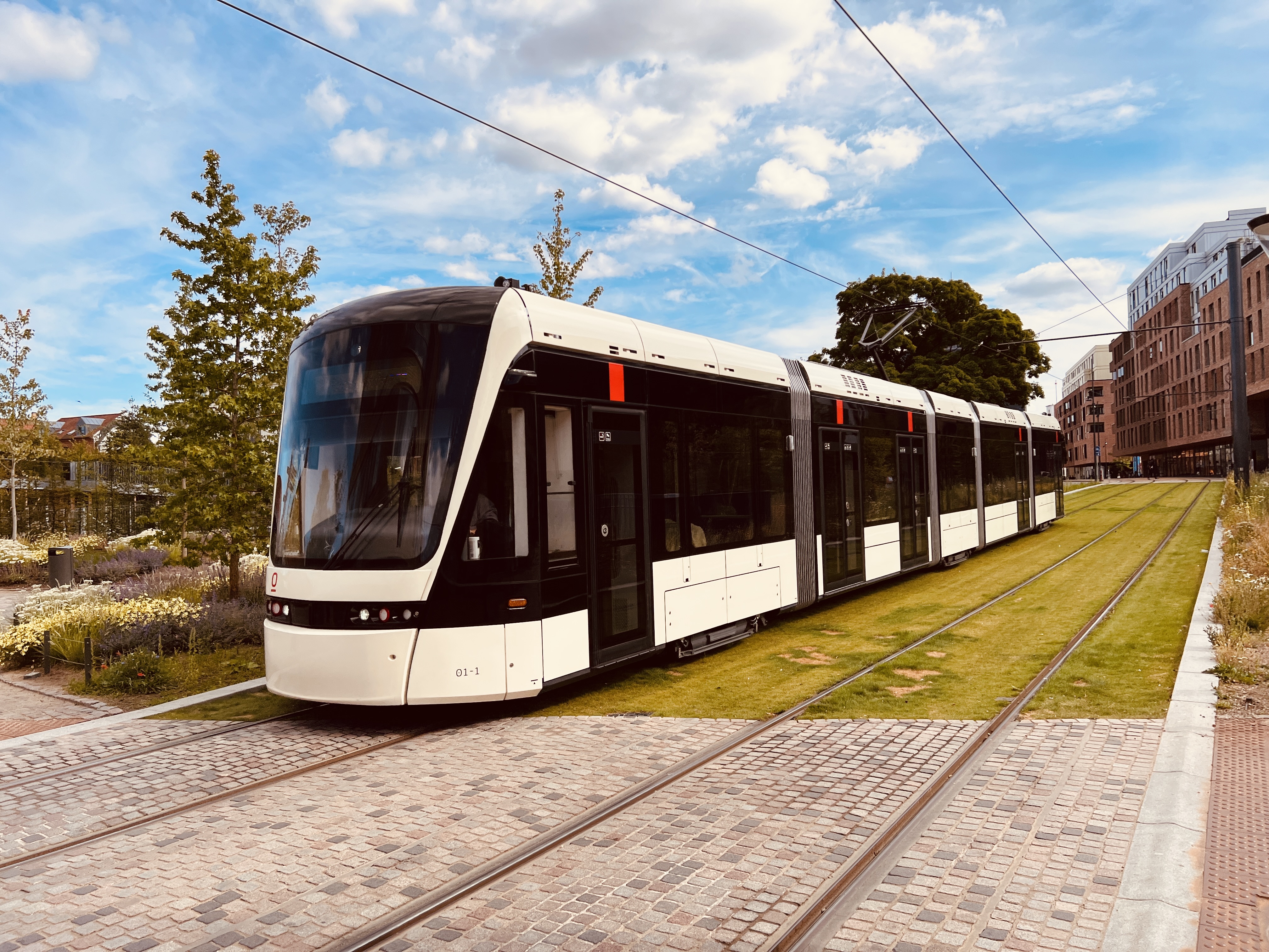 Billede af Odense Letbane togsæt 11 fotograferet ud for Odeon Letbanestation.