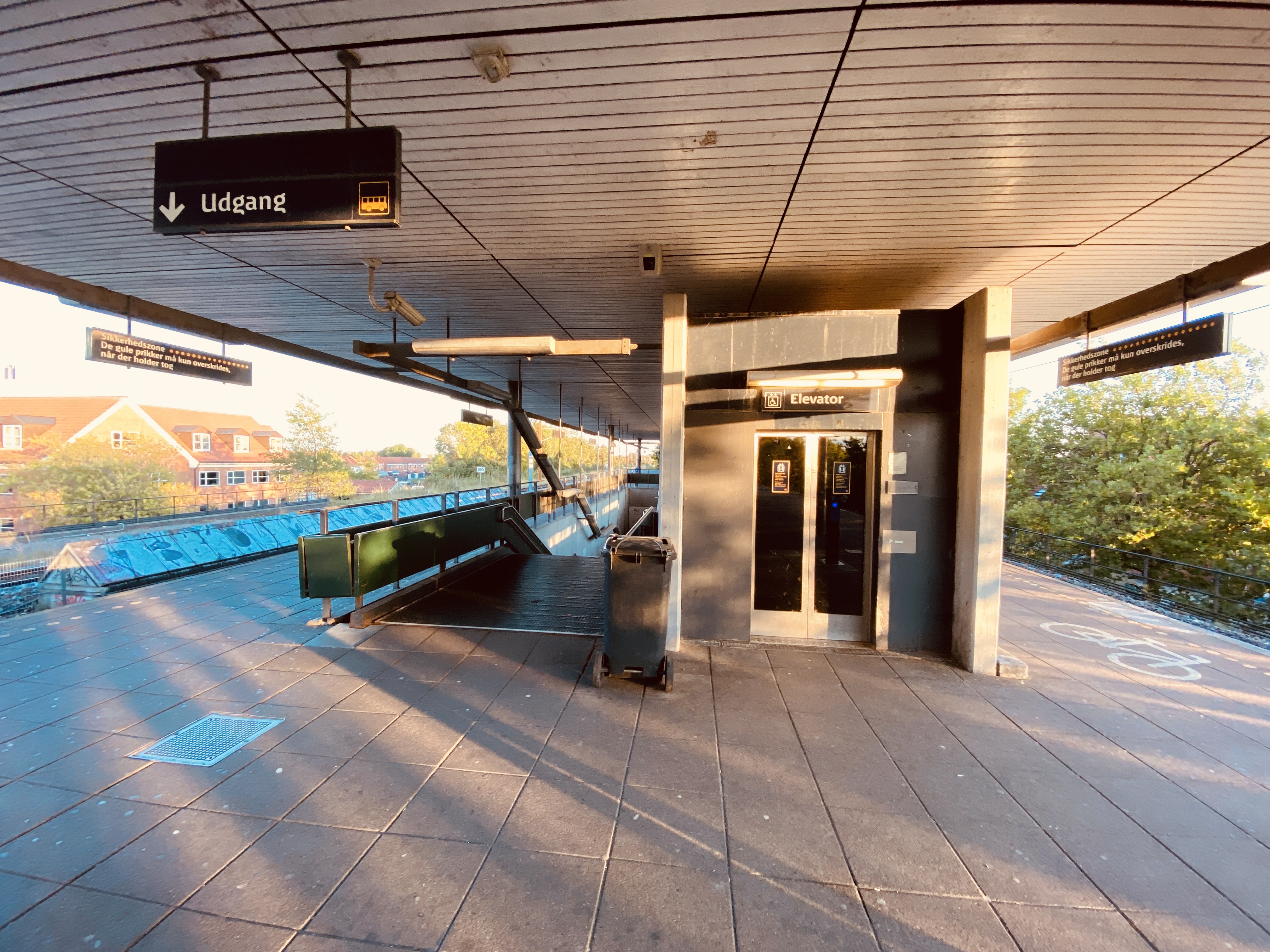 - Adgangsforhold: Stationen er tilgængelig for alle passagerer, herunder gangbesværede og rejsende med barnevogne eller store kufferter. Der er både trapper og elevatorer, der forbinder perronerne.